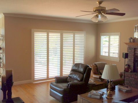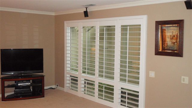 Many family rooms (and other rooms) have at least one sliding glass door. These sliders have lots of potential for providing light and spaciousness but often pose design challenges for the homeowner. What kind of window treatment suits them best? Custom shutters can often resolve the slider challenge and make them function and look even better. Although most homeowners are surprised to discover that shutters even work for sliding glass doors, there are at least six different ways we can design shutters for them. Just ask your Shutter Source design consultant to review these solutions with you.